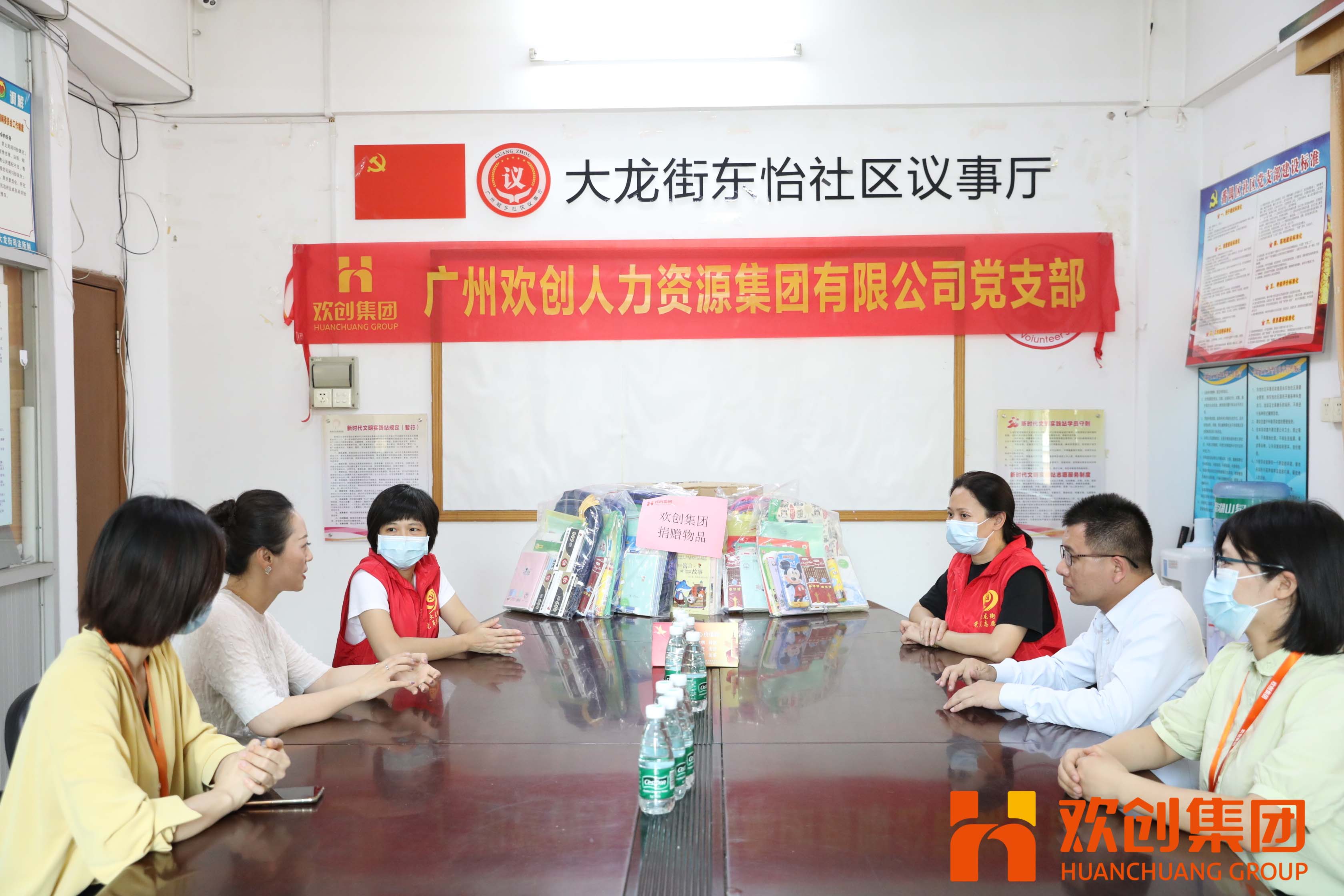 捐赠仪式上,天行足球_天行(中国)党支部为东怡社区内六名困境儿童捐赠了文具、书包、读物、书桌等学习用品。